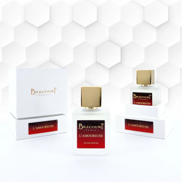 L'Amoureuse van Brecourt is geïnspireerd op het moment van een roes dat 'alles mooi wordt', als de adem van de eeuwige jeugd, als de geest vuur vat en het lichaam de vrijheid ondervindt, dan ruik je L'Amoureuse. De creatie is als een frisheid van vruchten (perzik, framboos, Calabrische bergamot, Siciliaanse citroen en mandarijn) met een bloemenakkoord (rode rozen, sambacjasmijn uit India), de geur heeft een vrolijk karakter, terwijl de basis naar het zoete neigt (sandelhout, witte muskus, benzoë uit Siam).