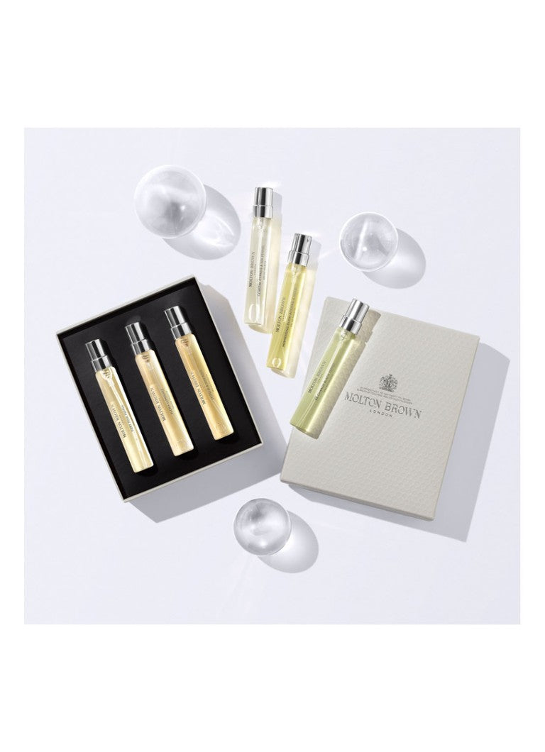Open de deuren naar een wereld van geuren met deze driedelige geurontdekkingsset. Breng je geest in beweging door met de verwarmende, kruidige noten van Fiery Pink Pepper; trakteer je huid op een wit geurboeket met Flora Luminare; laat je zintuigen betoveren door de meeslepende jasmijn en speelse framboos in Jasmine & Sun Rose.